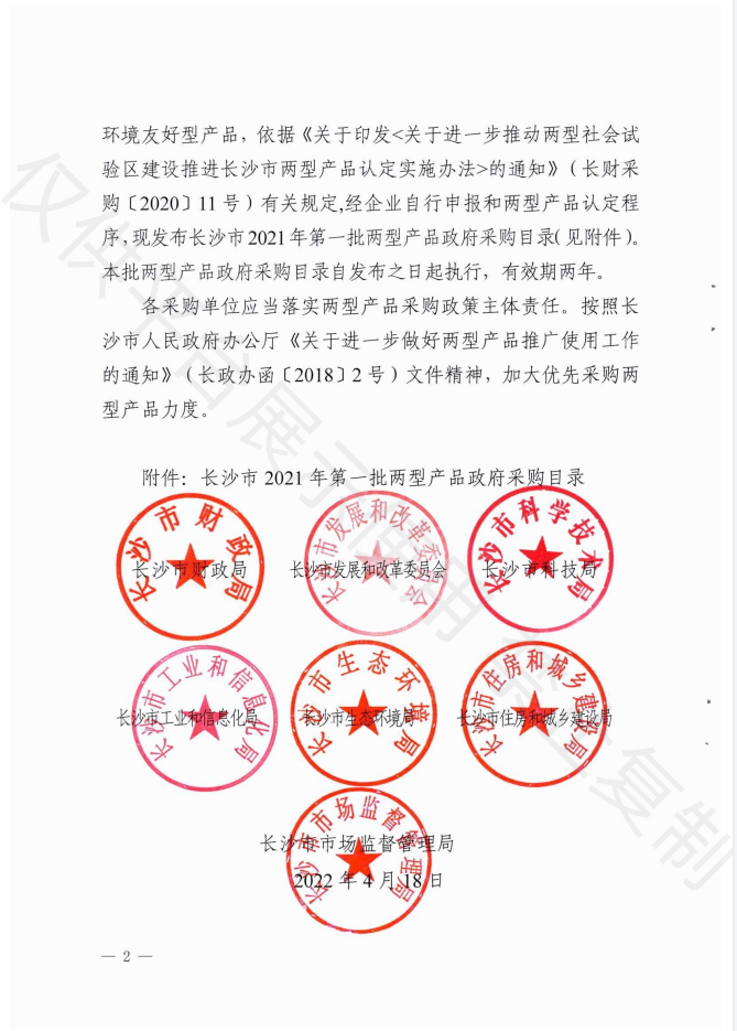 产品入选长沙市两型产品政府采购目录